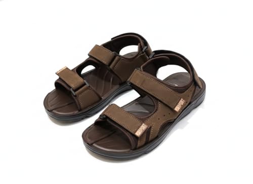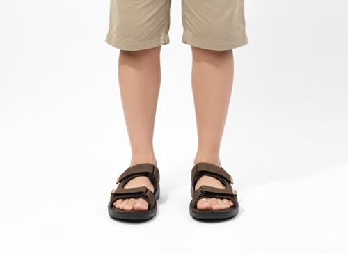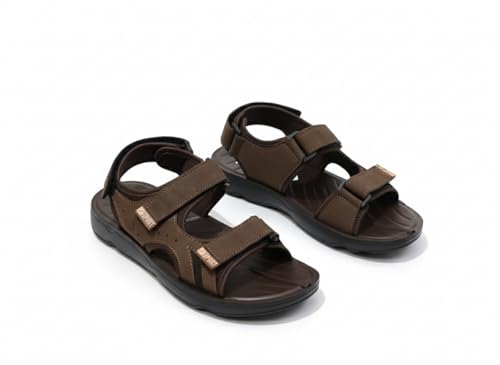 ELRAHAL - صندل رجالي عصري من ELRAHAL - صندل مريح للاستخدام اليومي - قابل للتعديل ومضاد للانزلاق - مقاس 41-46 - (بني / أسود)