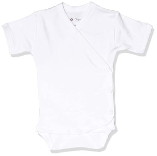 Elsayaad - سالوبيت بكباسين باكمام قصيرة من القطن بتصميم ملفوف من الامام للاولاد من الصياد، ابيض، 0-3 شهور