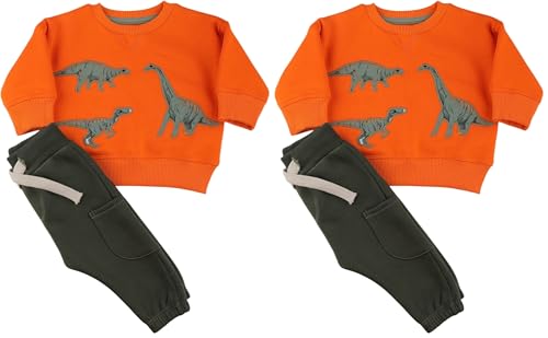 Elsayaad - الصياد بيجامة مطرزة بتصميم ديناصور للاولاد، برتقالي، سنتين (عبوة من قطعتين)