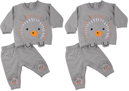 Elsayaad - بيجامة مطرزة بتصميم أسد للأولاد من الصياد - لون رمادي، مقاس لعمر 0 إلى 3 شهور (عبوة من قطعتين)