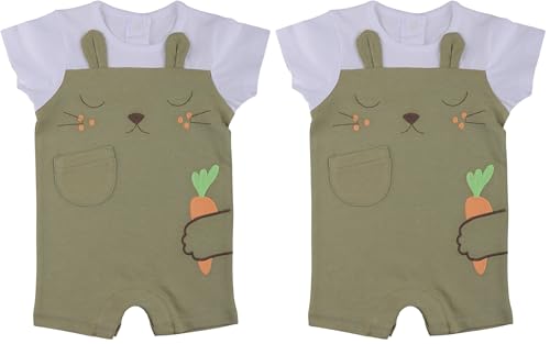 Elsayaad - سالوبيت قصير مطرز على شكل أرنب للأولاد من الصياد بلون أخضر غامق، لعمر منذ الولادة (عبوة من 2 قطعة)