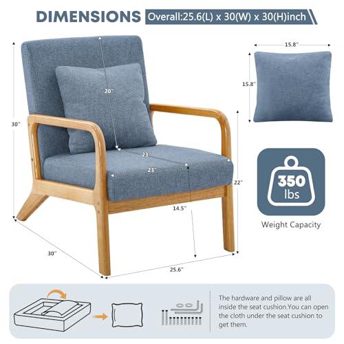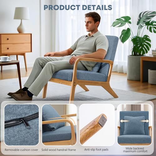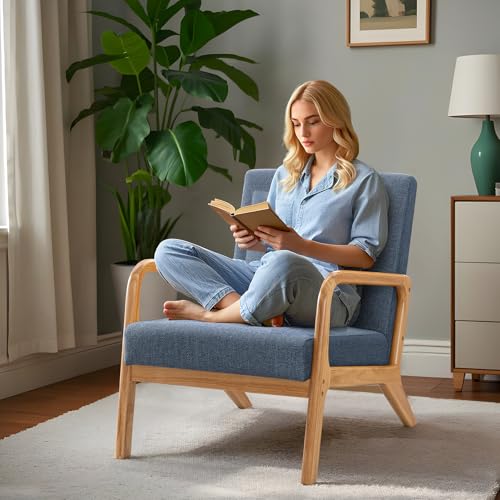 ELUCHANG - ايلوشانج كرسي عصري بتصميم منتصف القرن، كرسي بذراعين للقراءة من القماش، سهل التجميع، كرسي صالة لغرفة المعيشة وغرفة النوم والشقة