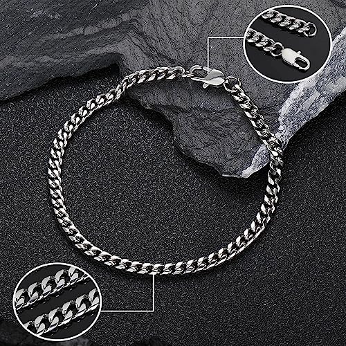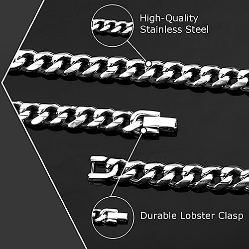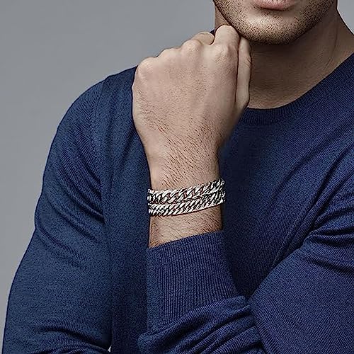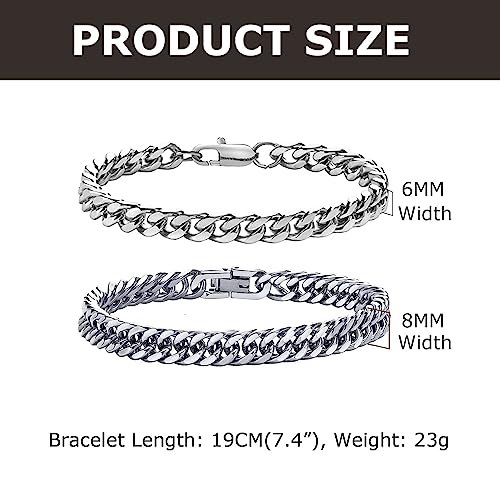 Elvielsl - اساور سلسلة كوبية للرجال من الفيلسل، قطعتان من سوار سلسلة بحلقات كوبية من الستانلس ستيل بعرض 6/8 ملم وطول 7.4/8.2 انش، هدايا مجوهرات للرجال والاب والصديق والزوج، فضي