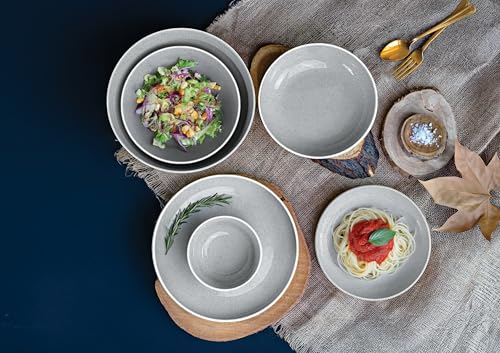 - 6 × أطباق مسطحة (600 ملليلتر لكل منها) - مثالية لتقديم المقبلات أو السلطات أو الأطباق الرئيسية بأناقة. 6 × أطباق مسطحة كبيرة (1 لتر لكل منهما) - أطباق واسعة مصممة لتقديم كميات وفيرة من وجباتك المفضلة.
