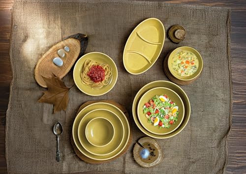 - 6 × أطباق مسطحة (600 ملليلتر لكل منها) - مثالية لتقديم المقبلات أو السلطات أو الأطباق الرئيسية بأناقة. 6 × أطباق مسطحة كبيرة (1 لتر لكل منهما) - أطباق واسعة مصممة لتقديم كميات وفيرة من وجباتك المفضلة.