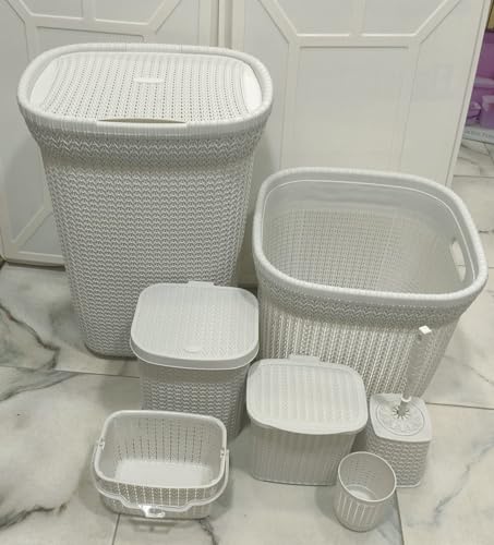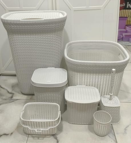 Generic - الوطنية طقم 7 قطع نت يتضمن: 1 سلة ملابس بغطاء / 1 سلة ملابس / 2 سلة قمامة بغطاء / 1 فرشاة تواليت / 2 سلة متعددة الاستخدام - ابيض