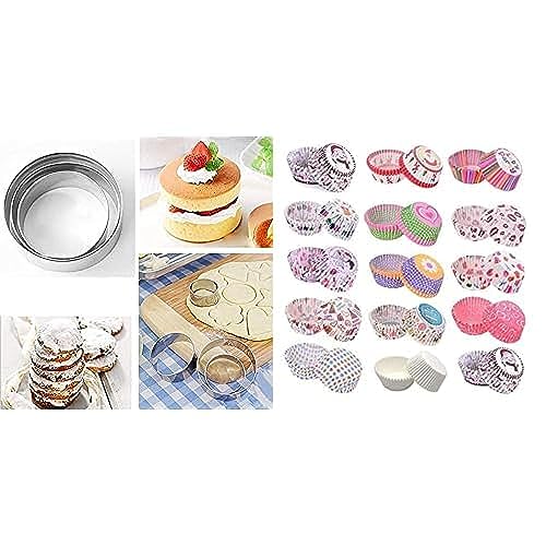 elyassin - مجموعة قطاعات عجين البسكويت وعجينة السكر، 3 قطع - اشكال متنوعة + مجموعة ورق زبدة للكب كيك من الياسين - 50 قطعة، متعددة الألوان