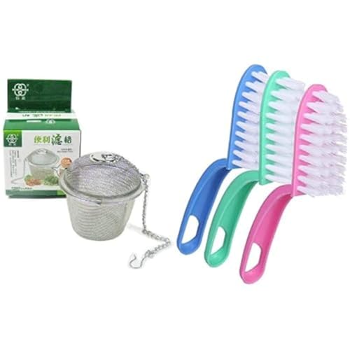 elyassin - مصفاة ستانلس ستيل للشاي والتوابل من الياسين، وطقم فرش بلاستيكية لتنظيف الأسماك، 3 قطع - متعددة الألوان