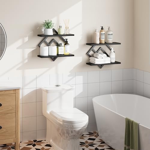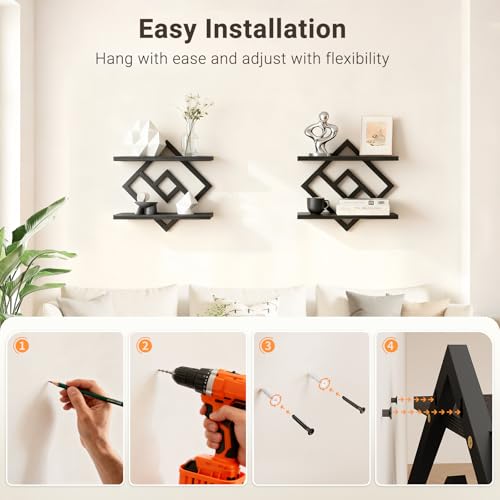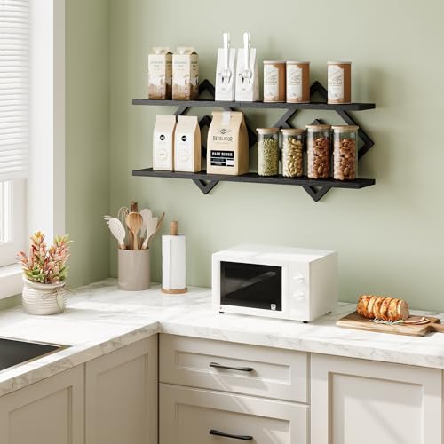ELYKEN - ايلكين ارفف عائمة للحائط، مجموعة من رفين معلقين، رفوف تخزين مثبتة على الحائط من طبقتين للكتب والديكور، مثالية لغرفة المعيشة وغرفة النوم والمطبخ والمكتب المنزلي، لون اسود