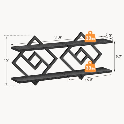 - تصميم أنيق مزدوج الطبقات، يزيد من المساحة والأناقة: تتميز بتصميم متطور مزدوج الطبقات مع إطارات معدنية أنيقة على شكل ماسة، هذه الأرفف العائمة هي موفرة للمساحة الأنيقة. لا توفر مساحة تخزين واسعة للديكور والكتب والضروريات فحسب، بل تحول أيضًا جدارك إلى نقطة محورية للعرض، مما يعزز أجواء أي غرفة دون عناء