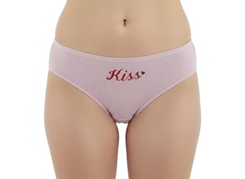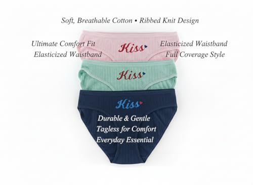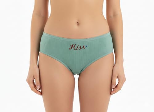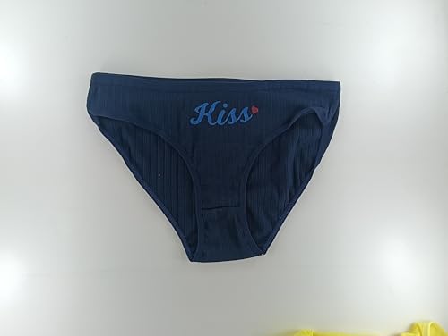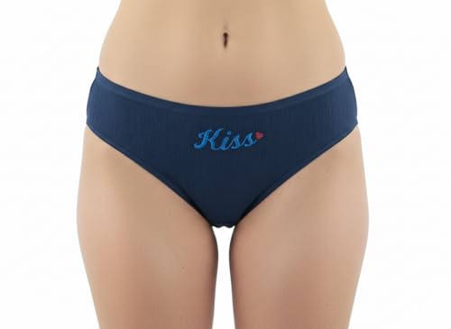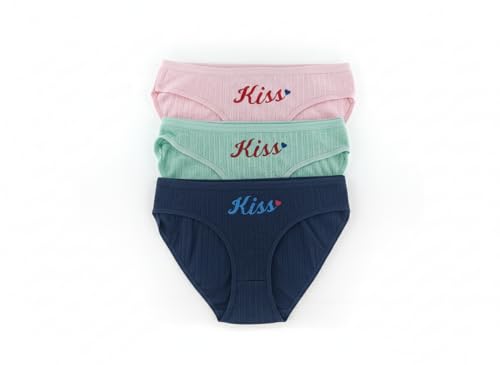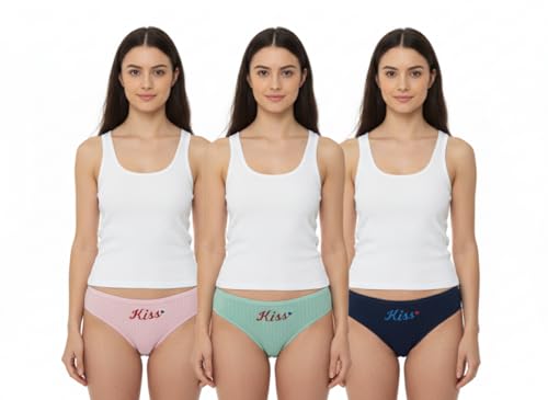 Generic - بانتي بيكيني من القطن المضلع للنساء من الزهراء سكارف - ملابس داخلية ناعمة مطرزة بكلمة "Kiss" قابلة للتمدد حتى XL، مجموعة من 3 قطع متعددة الالوان
