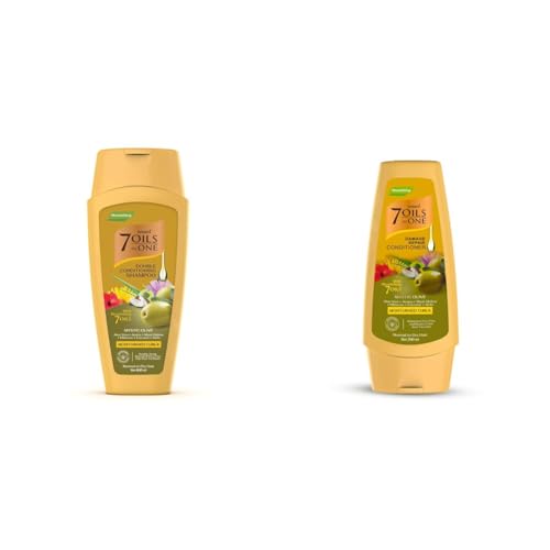 Emami - شامبو 7 زيوت في واحد للترطيب المضاعف برائحة ميستيك أوليف، 400 مل + بلسم ايمامي 7 زيوت في واحد لإصلاح التلف برائحة ميستيك أوليف من ايمامي، 200 مل
