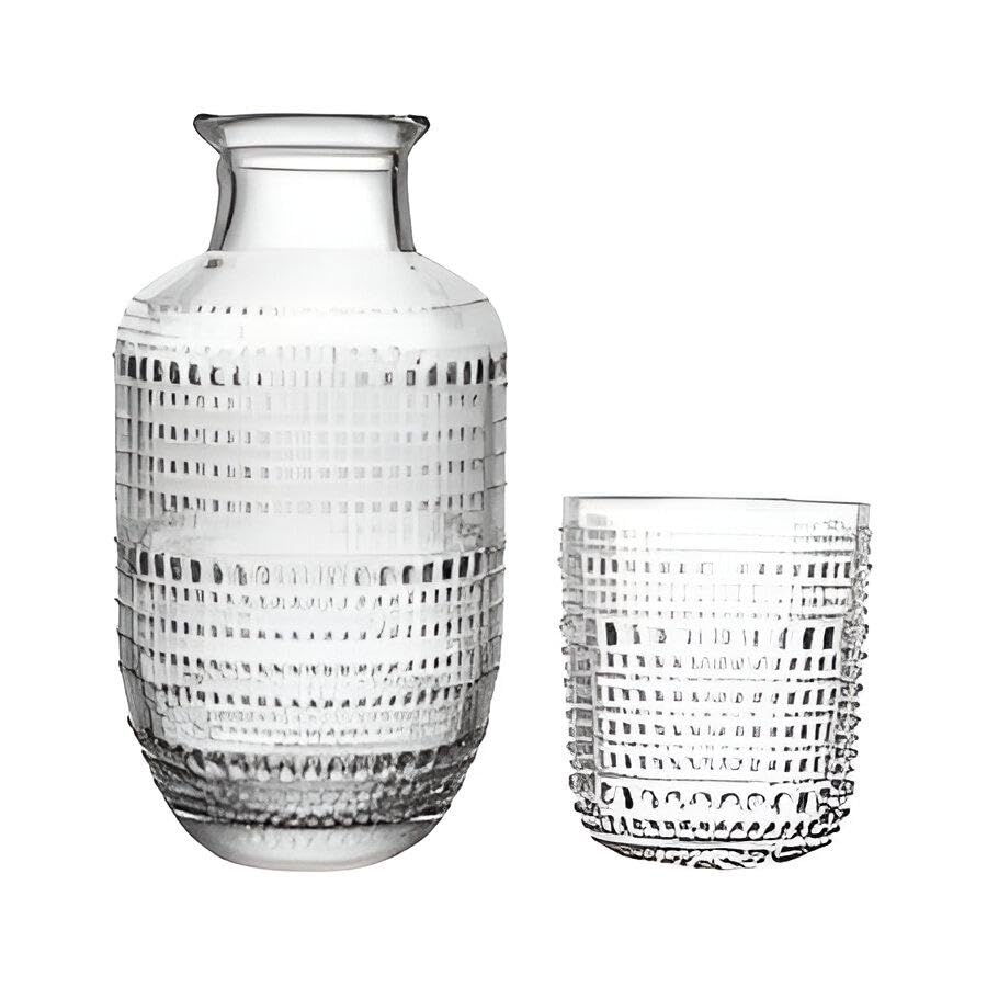 - تتضمن مجموعة إبريق السرير المستوحاة من الطراز القديم إبريق منقوش شفاف سعة 20 اونصة وكوب مطابق سعة 7 اونصة، مصمم لترطيب مريح في الليل دون الحاجة إلى النهوض، مما يجعله مثاليًا للرشفات في وقت متأخر من الليل والروتين الصباحي.