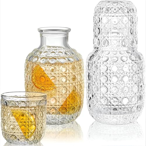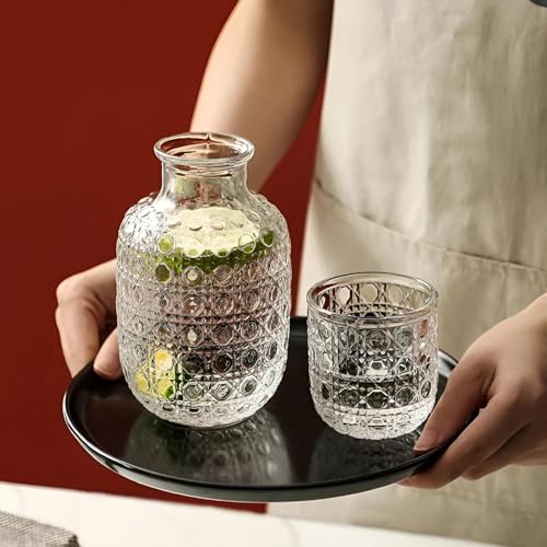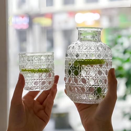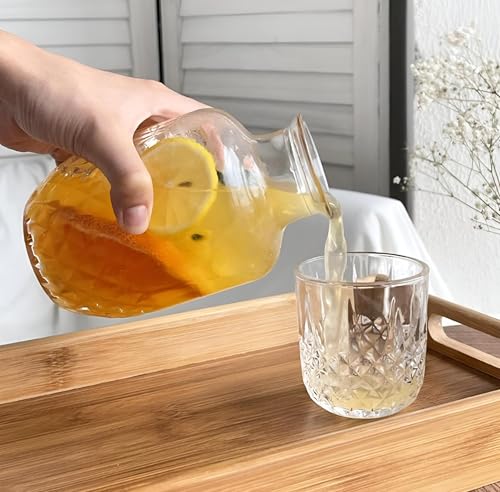 Generic - ابريق منقوش - ابريق زجاجي مزخرف مع مجموعة اكواب مطابقة، ابريق وكوب بنمط عتيق، ابريق سعة 600 مل وزجاج 160 مل لترطيب منزلي أنيق.
