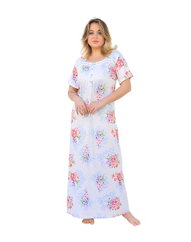 Dadoush - ثوب نوم مطرز من القطن فستان منزلي فضفاض بنصف كم ملابس نوم ناعمة ومزودة بمسامات للتهوية ومريحة للنساء