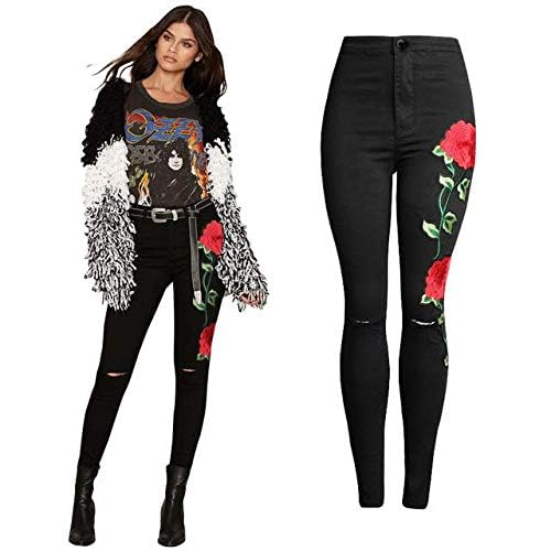Embroidered Flower - امبرويدريد فلاور جينز سكيني -نساء نساء