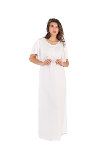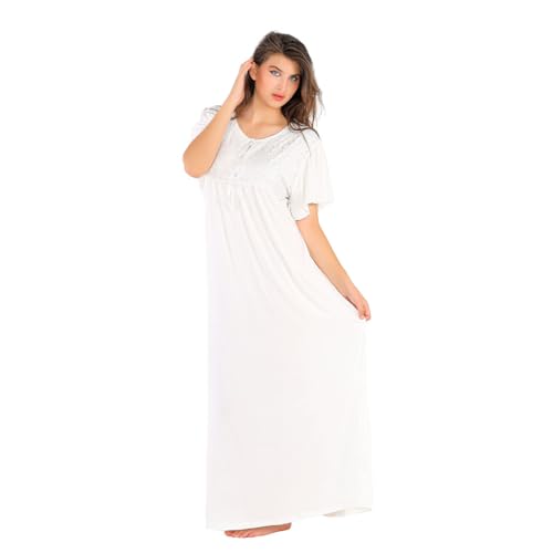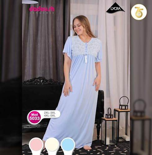 Dadoush - قميص نوم ماكسي مطرز- فستان منزلي فضفاض بنصف كم ملابس نوم ناعمة ومزودة بمسامات للتهوية ومريحة للنساء - عباية ماكسي صيفية للنساء | ثوب نوم طويل مطرز