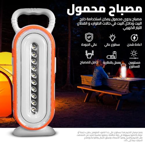 Generic - مصباح طوارئ قابل لإعادة الشحن مع بطارية ليثيوم أيون، مصابيح ليد للطوارئ مع إضاءة عالية وضوء خافت