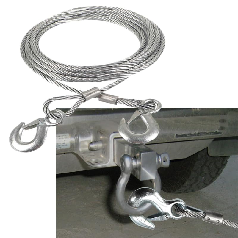 Generic - حبل سحب من الستيل لحالات الطوارئ، حبل سحب سلكي شديد التحمل مع خطافات مزلاج امان وتصميم مقوى (10 مل، 3.5 متر، يحمل 5 طن) - كابر تريد