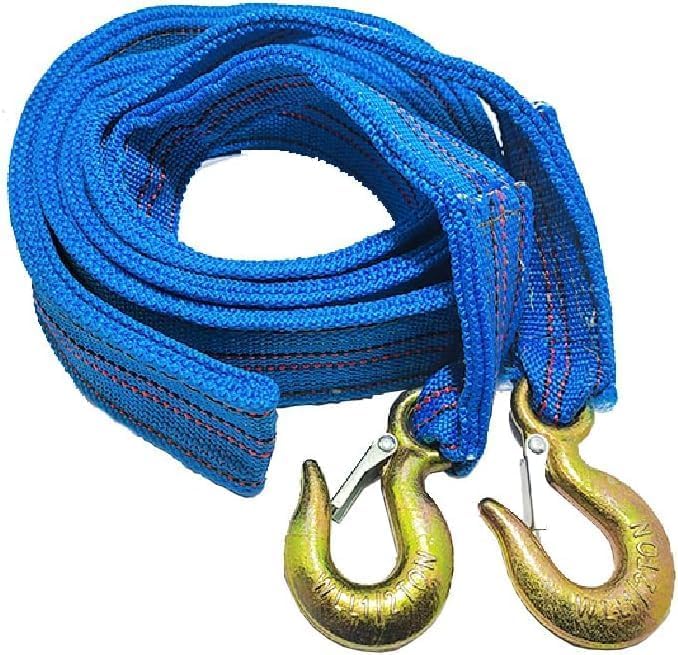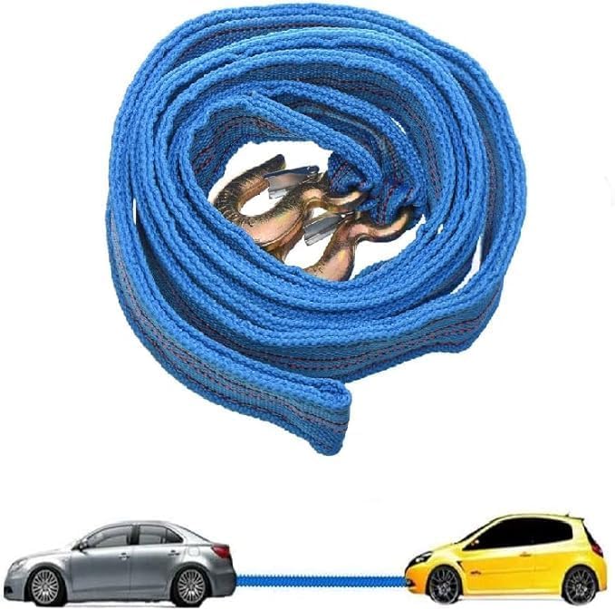Generic - حبل سحب للطوارئ شديد التحمل مع خطافات مزلاج امان وتصميم معزز لاستعادة المركبات وحالات الطوارئ(ازرق ، 4 متر ، تحمل 5 طن )-AGA