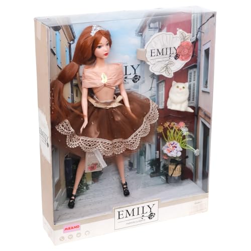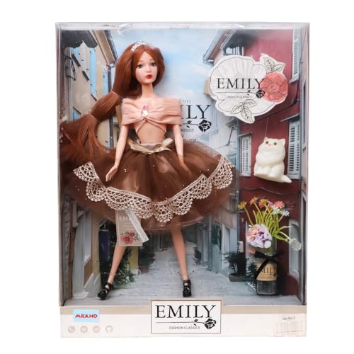 Generic - دمية ايميلي فاشون مع فستان بني ومجسم قطة للحيوانات الاليفة - QJ099A