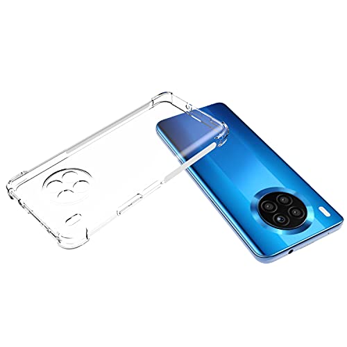 EMODIL - جراب حماية خلفي بوسادة هوائية من السيليكون الناعم المقاوم للصدمات والمضاد للخدش بزاوية للحماية الصدمات ايموديل لموبايل هواوي نوفا 8i - هونر 50 لايت مطاط شفاف