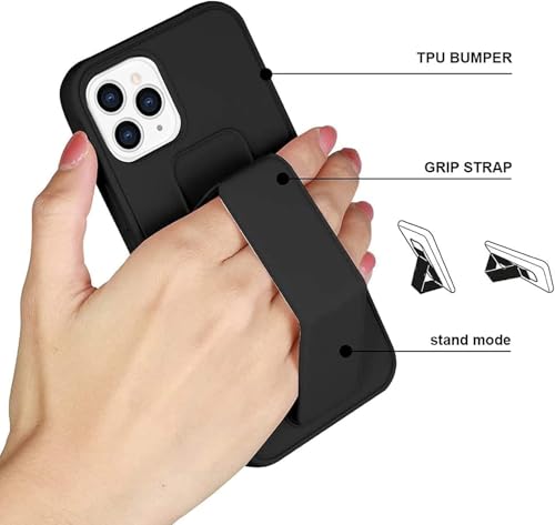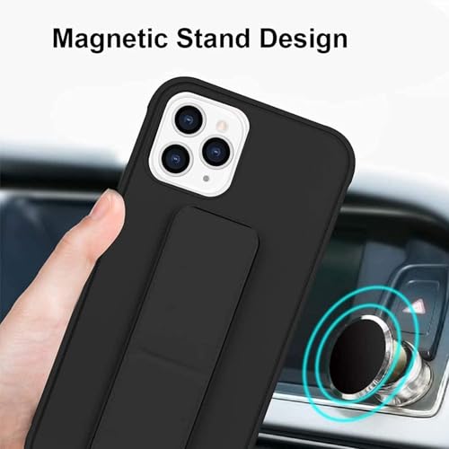 - حافظة لهاتف ايفون 15 برو مع مسند وحامل مغناطيسي اسود للسيارة، حزام يد عمودي وأفقي من السيليكون الممتاز ومقبض مع حامل متعدد (اسود)