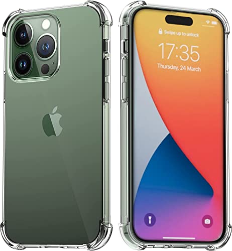 EMODIL - جراب حماية خلفي بوسادة هوائية من السيليكون المرن الناعم مضاد للخدش وبزوايا مضادة للصدمات لموبايل ايفون 14 برو من ايموديل - شفاف