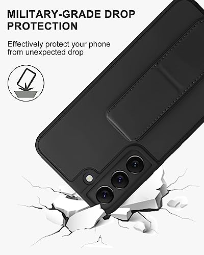 EMODIL - حافظة سامسونج جالاكسي S24 مع مسند وحامل مغناطيسي للسيارة حزام يد عمودي وافقي من السيليكون الممتاز ومقبض حامل متعدد لهاتف S24 اسود