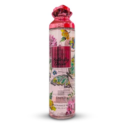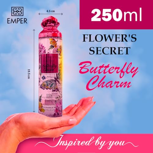 Emper - سبراي معطر الجسم برائحة باترفلاي تشارم من مجموعة فلاورز سيكريت للنساء امبر 250 مل