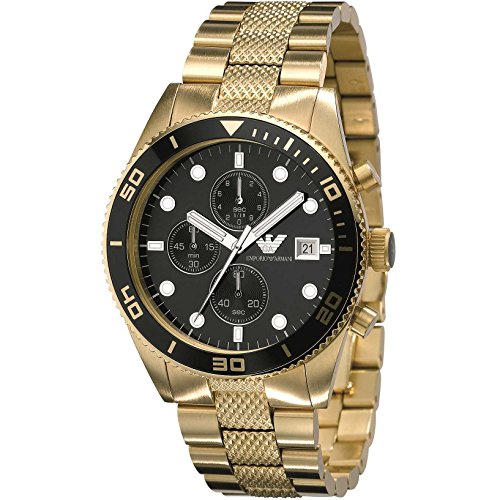 Emporio Armani - ساعة امبوريو ارماني سوداء للرجال بسوار من الستانلس ستيل كرونوغراف - AR5857
