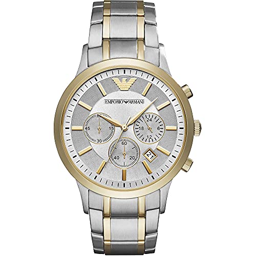 Emporio Armani - ساعة انالوج بمينا رمادي وسوار ستانلس ستيل للرجال من امبوريو ارماني Ar11076،حركة كوارتز
