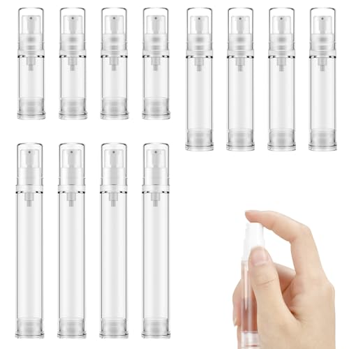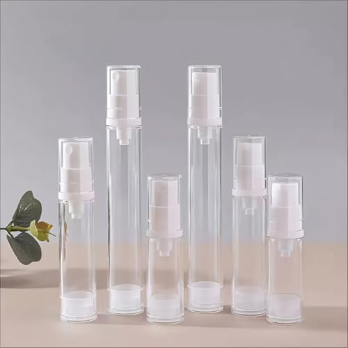 KIKAWORD - حاويات مستحضرات التجميل الفارغة من الهواء 12 قطعة من زجاجات مضخة بدون هواء، حاويات مضخة لوشن شفافة قابلة لاعادة الملء، زجاجات مضخة لوشن بلاستيكية محمولة لكريم الاساس والجل ومرطب ايسنس