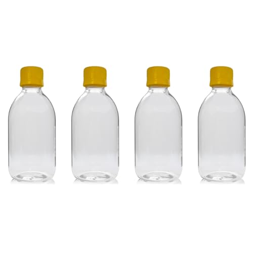 Generic - زجاجات بلاستيك فارغة بغطاء حلزوني للسفر - 4 × 250 مل - شفافة قابلة لاعادة التدوير أصفر