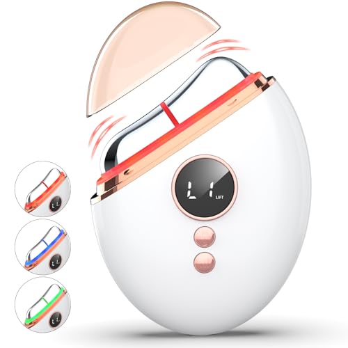 Profey - جهاز تدليك الوجه جوا شا بتقنية التحفيز الكهربائي للعضلات من بروفي، جهاز تدليك كهربائي جوا شا مع اهتزاز وحرارة، جهاز شد الوجه بضوء أحمر، أزرق، أخضر، مدلك الوجه للوجه، مضاد للتجاعيد والشيخوخة