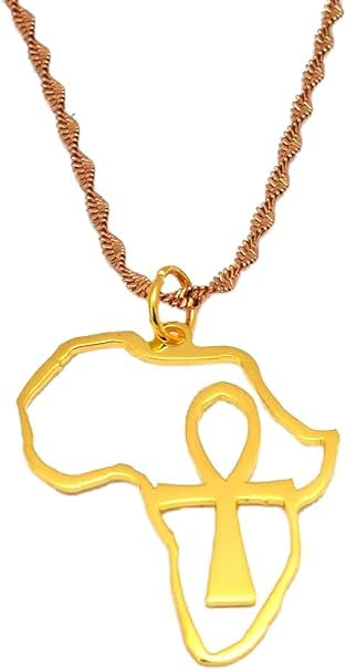 Generic - سلسلة بناتي وحريمي بدلاية عنخ مصرية فرعونية وخريطة أفريقيا من ايمتجار، مجوهرات هدايا تذكارية مصرية