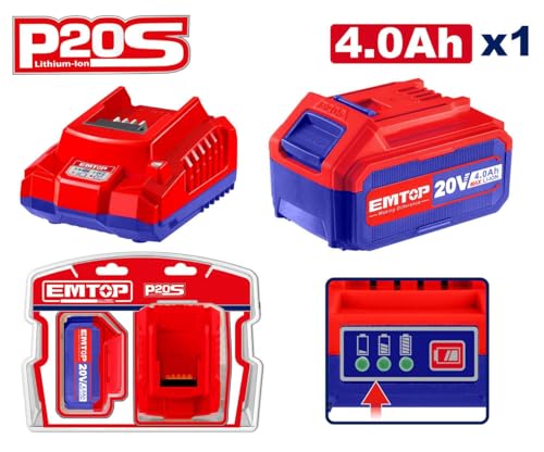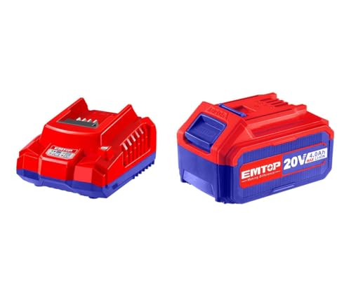 EMTOP - طقم شاحن وبطارية ليثيوم ايون 20 فولت 4.0 أمبير في الساعة من امتوب - أحمر