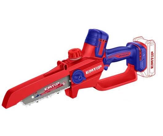 EMTOP - طقم منشار جنزيري لاسلكي صغير 15 سم بجهد 20 فولت مع بطاريتين من امتوب، أحمر