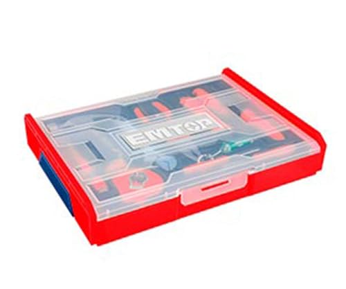 EMTOP - مجموعة ادوات يدوية منزلية مكونة من 51 قطعة مع صندوق بلاستيكي قابل للتكديس من امتوب - احمر