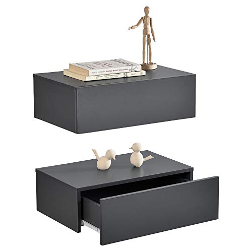 [en.casa] - رفين جداريين لغرفة النوم بدرجين من لوح الخشب الحبيبي بلون رمادي داكن بمقاس 46×30×15 سم ان.كاسا