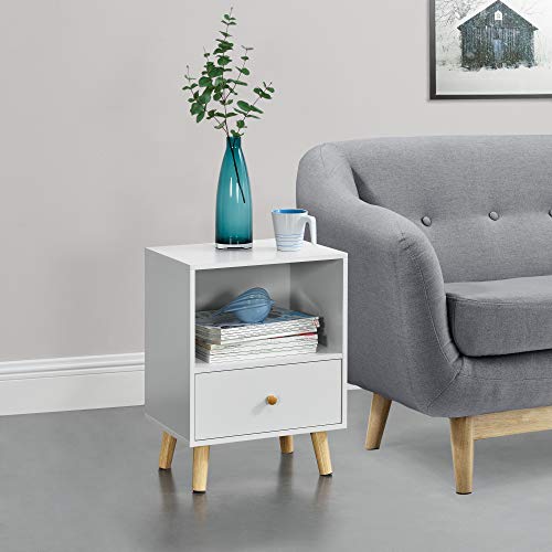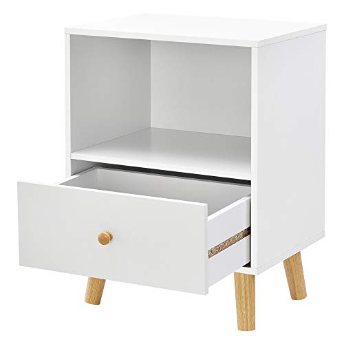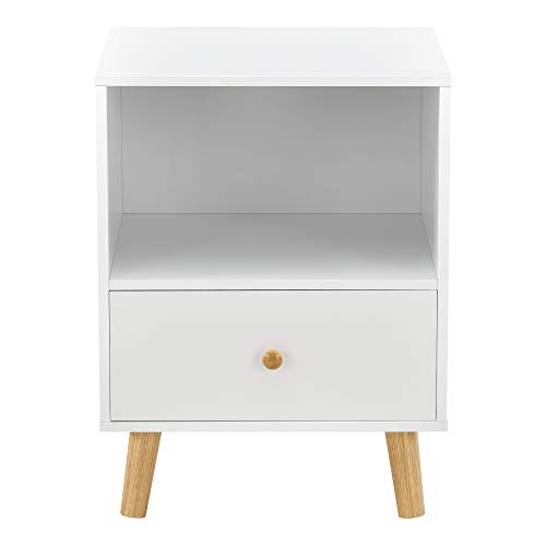 [en.casa] - ترابيزة جانبية ساندفال من [ان-كاسا] 40 × 30 54 سم مع درج جانب السرير حجرة تخزين ابيض خشب بي في سي