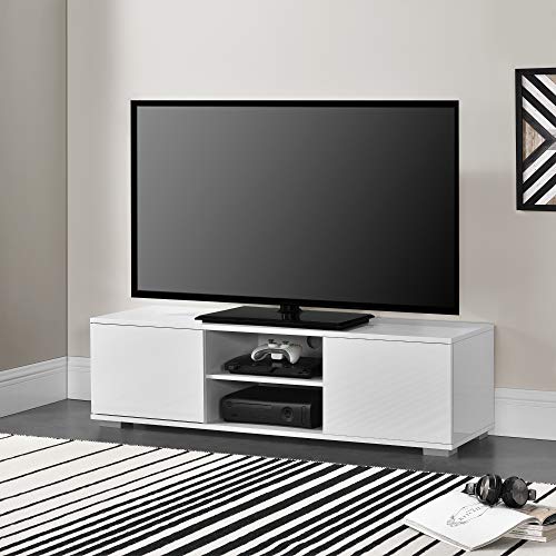 [en.casa] - خزانة تلفزيون منخفضة لغرفة المعيشة مقاس 34.5 سم × 120 40 لون ابيض لامع من ان.كاسا