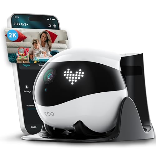 Enabot EBO - كاميرا مراقبة ذكية اي بي او اير 2 فاميلي بوت 2 كيه من اينابوت، روبوت مع شحن ذاتي، روبوت دورية للمراقبة المنزلية، كاميرا لاسلكية للكلاب والقطط مع رؤية ليلية، صوت ثنائي الاتجاه (ابيض)