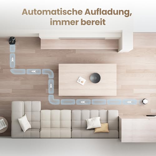 - استقلالية كاملة بفضل الشحن الذاتي: يعود النظام تلقائيًا إلى محطة الشحن عبر الملاحة بالأشعة تحت الحمراء إذا كانت البطارية منخفضة. للحصول على الأداء الأمثل، ضع المحطة في مكان مفتوح، بعيدًا عن المرايا أو الأسطح الزجاجية.