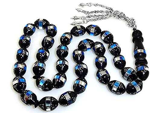 Generic - سبحة مكونة من أحجار خشب الكوك البيضاوية مينا أبيض و أزرق بوزن 37.1 جرام، للنساء