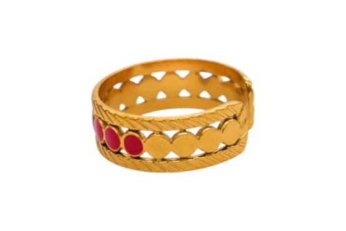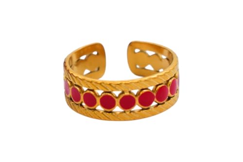 Generic - خاتم مفتوح من الستانلس ستيل على شكل حلقة مطلية بالمينا - ذهبي