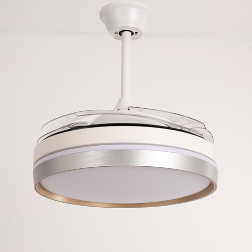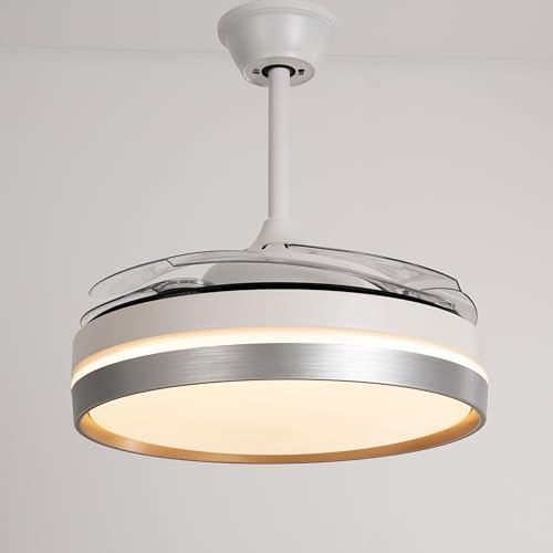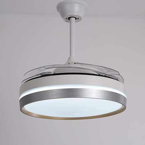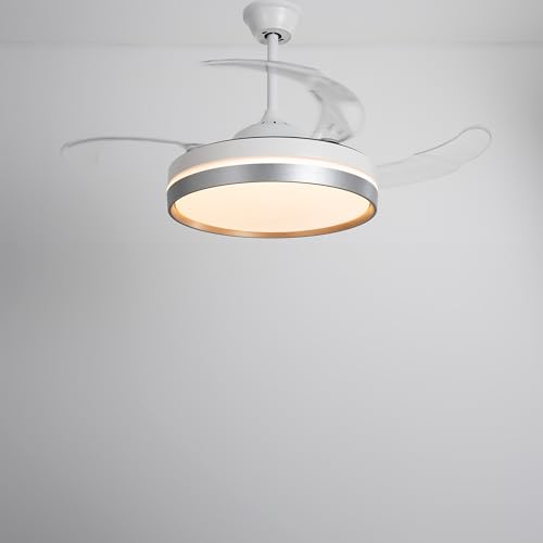 Enarat - مروحة سقف ريمات بشفرات مخفية من إنارات، مقاس 1.02 متر، لون أبيض، 75.0 واط