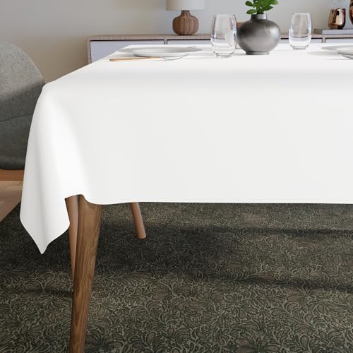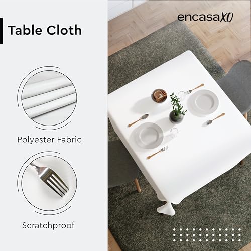 Encasa XO - مفرش طاولة من البوليستر الحريري بطول 56 × انش لطاولة الطعام المربعة والمهرجانات والحفلات الداخلية والخارجية والاستخدام اليومي انكاسا هومز - ابيض