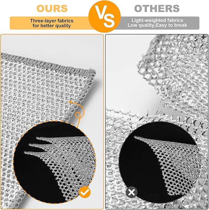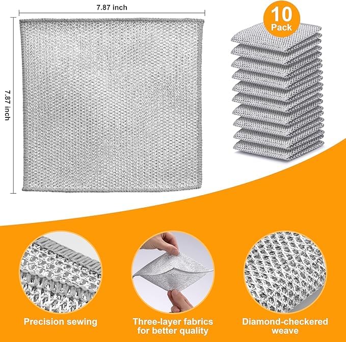 - ✅تصميم بدون خدوش: قماش غسيل الأطباق الخاص بنا مصنوع من قماش خاص وسلك فضي. إنها متينة وسهلة الاستخدام ولا تترك خدوش أو تتلف أدوات المائدة وأدوات المطبخ، بحيث يمكنك الاطمئنان عند التنظيف.