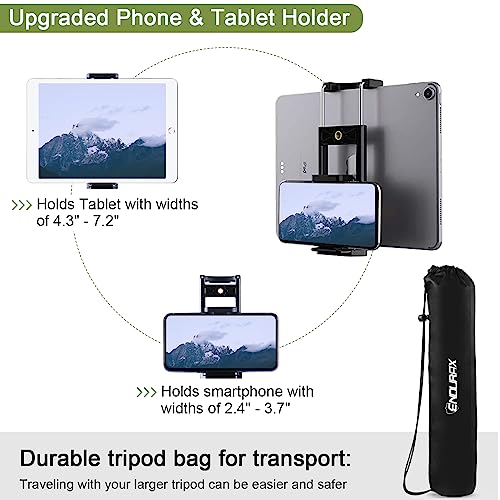 Endurax - حامل ثلاثي القوائم 66 للكاميرا والموبايل مع لوحة سريعة الفك متوافق مع آيفون ونيكون وكانون دي اس ال ار شديد التحمل ومتين من اندوراكس